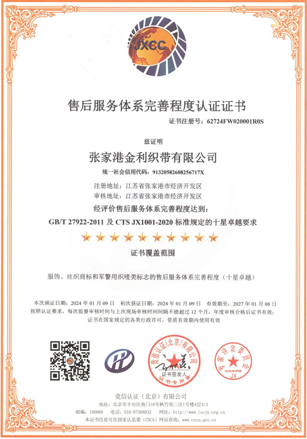 售后服务体系完善程度认证证书